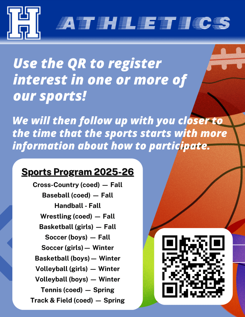 There will be tryouts for all sports except Cross Country, Wrestling, and Track & Field, which are open to all students. Tryout dates will be shared before the start of the season.